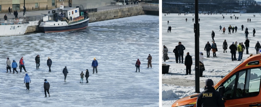 Om du ser någon gå igenom isen: Larma 112 direkt. Närma dig från samma håll som personen kom. Där höll isen. Ha alltid något mellan dig och den nödställde (lina, ispik, livboj eller trädgren) och prioritera din egen säkerhet – en livräddare i ännu en vak hjälper ingen. Använd gärna flythjälp och säkring om du måste ut på tunn is.
