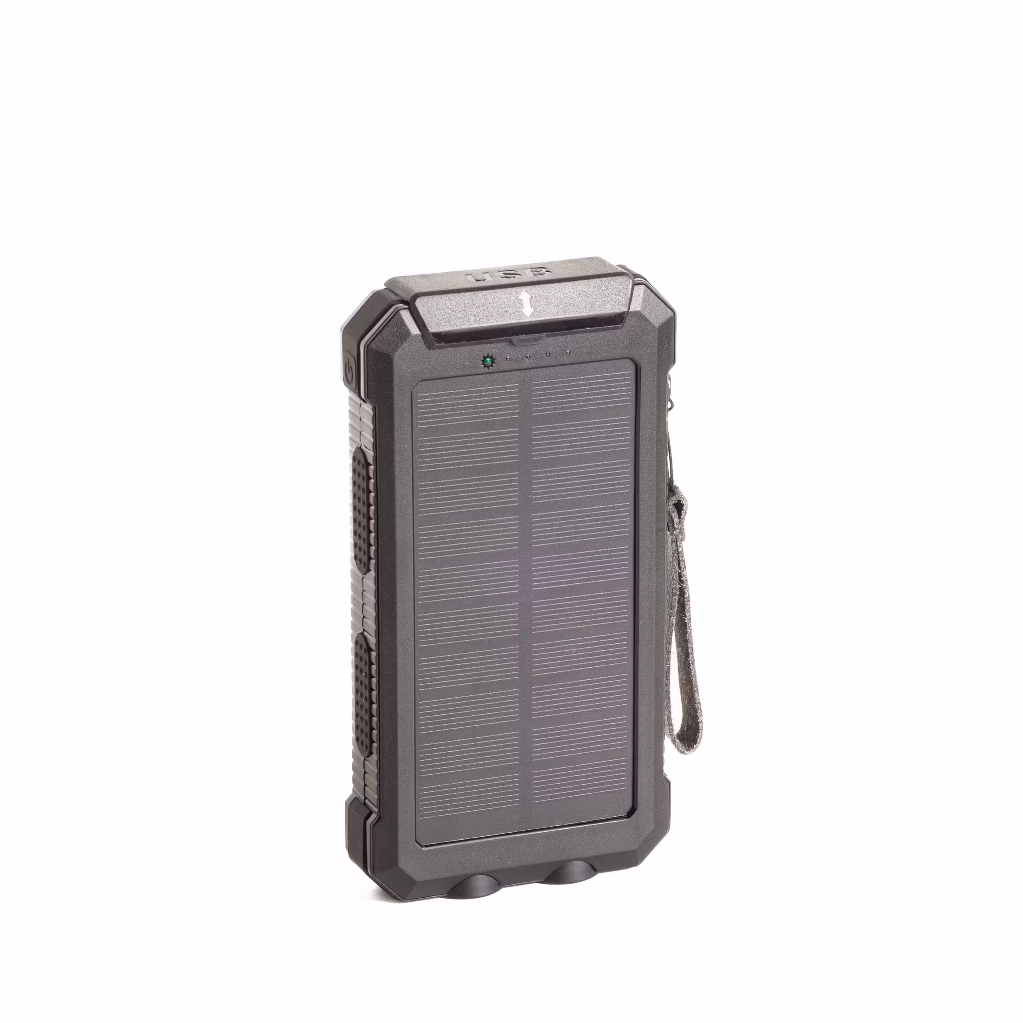 Extreme Power Bank kan laddas både via eluttag med kabel och med sina inbyggda solceller. Observera att solcellerna är avsedda som en reserv- och underhållsladdning vid nödsituationer eller under längre utflykter utan tillgång till el – inte som den huvudsakliga laddningskällan.
