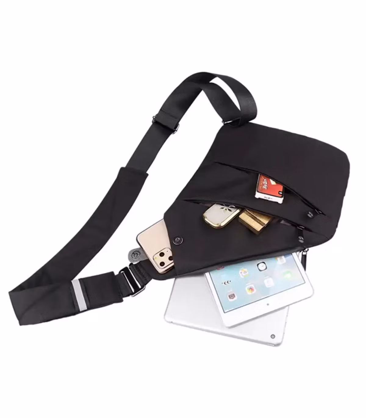Med en innovativ antistöld-design håller vår bröstväska dina värdesaker säkra, även i folktäta områden. Den smarta konstruktionen gör det svårt för tjuvar att komma åt innehållet, så att du kan njuta av din dag utan oro.