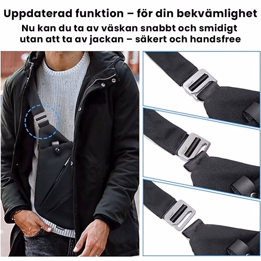 Upptäck trygghet och stil i ett med vår antistöld bröstväska. Perfekt för både stadsäventyr och resor!