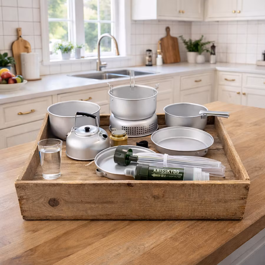 Paketet innehåller ett pålitligt stormkök som gör det enkelt att laga mat hemma, i naturen eller vid strömavbrott, samt ett kraftfullt vattenfilter som kan rena upp till 4 000 liter vatten och göra det drickbart. Med detta paket är du redo att hantera de utmaningar som kan uppstå vid kriser – och kan ge din familj den trygghet som behövs när samhället stannar.