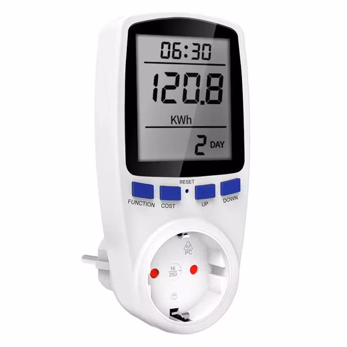 Elmätare för vägguttag som hjälper dig att mäta energiförbrukningen i ditt hem. Tack vare denna elmätare kan du enkelt kontrollera vilka enheter som förbrukar mest energi, vilket gör att du kan eliminera strömtjuvarna.