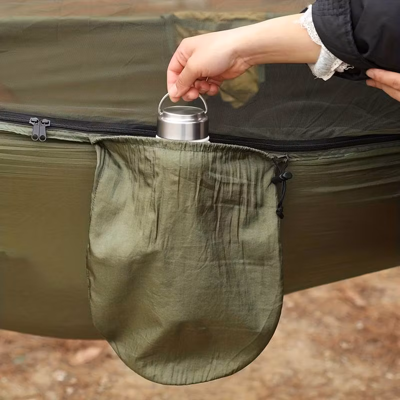 Sovsäck i en hängmatta, ett annorlunda alternativ mot ett traditionellt tält! Denna modell har skydd i form av ett myggnät och plats för din vattenflaska. Var nära naturen i ditt alldeles egna trädtält!
