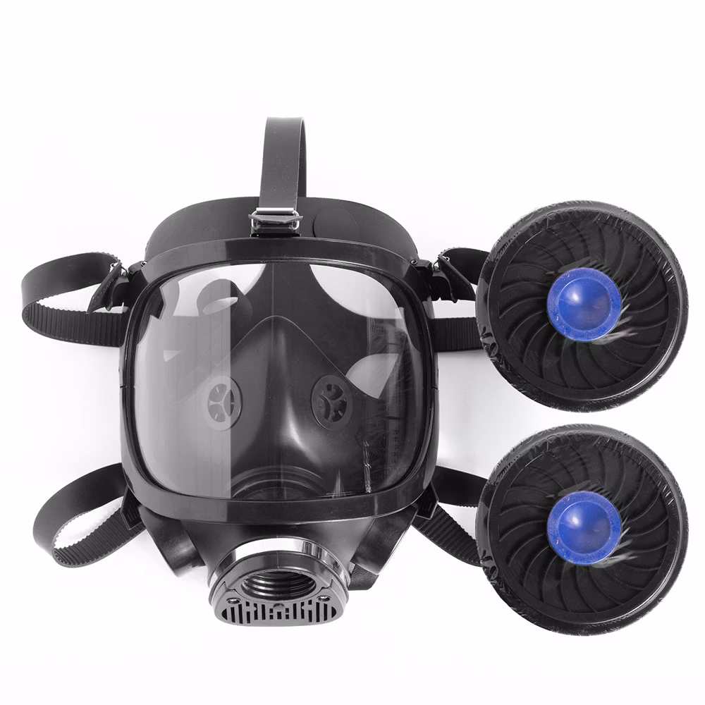 BW1002 är en helmask (gasmask / skyddsmask) utrustad med två kombinerade B2P3R-filter, utvecklad för att skydda dina luftvägar, ögon och ansikte vid kemiska utsläpp, brandrök, farliga partiklar och giftiga gaser – situationer där vanlig andning kan bli livsfarlig på sekunder.