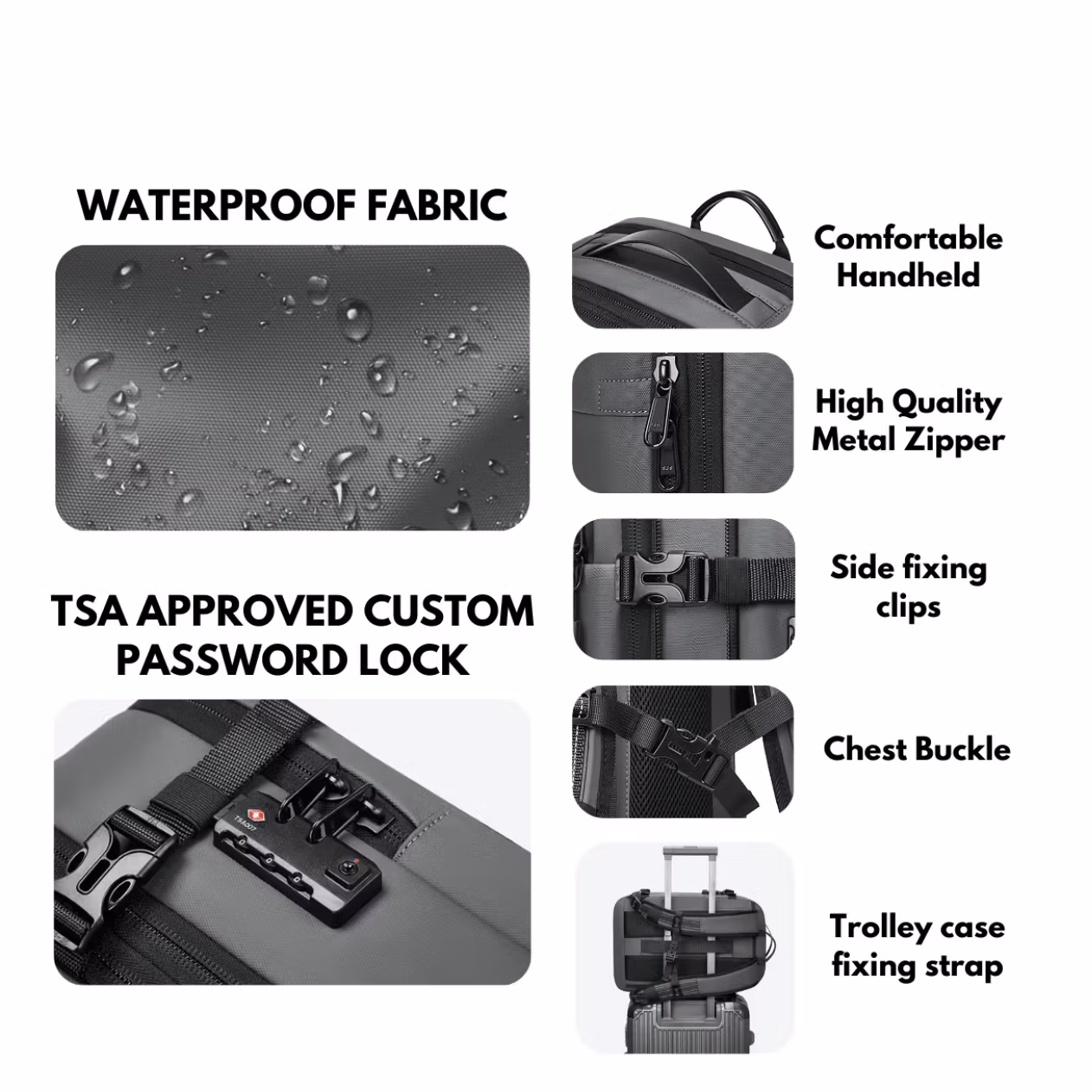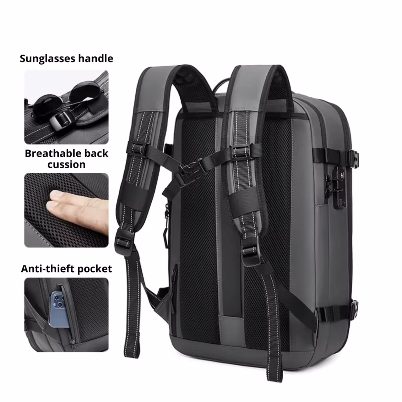 Med mått som håller sig inom de flesta flygbolags gränser för handbagage (49 x 32 x 20 cm) kan du smidigt ta med ryggsäcken ombord och spara in på avgifter.