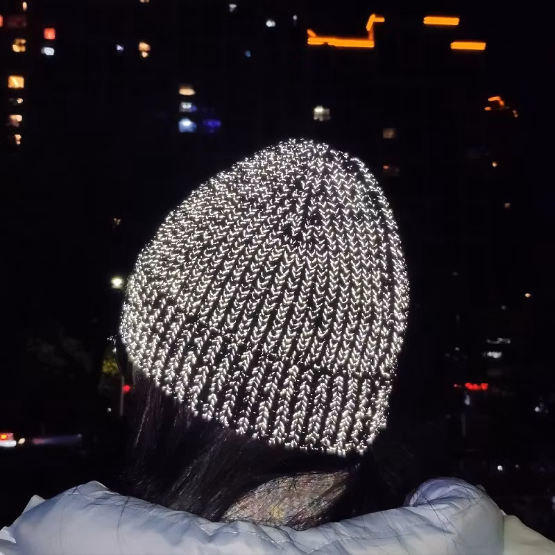 En varm och skön stickad mössa med invävda reflextrådar som gör att du syns bättre i mörkret – utan att kompromissa med stil eller komfort.