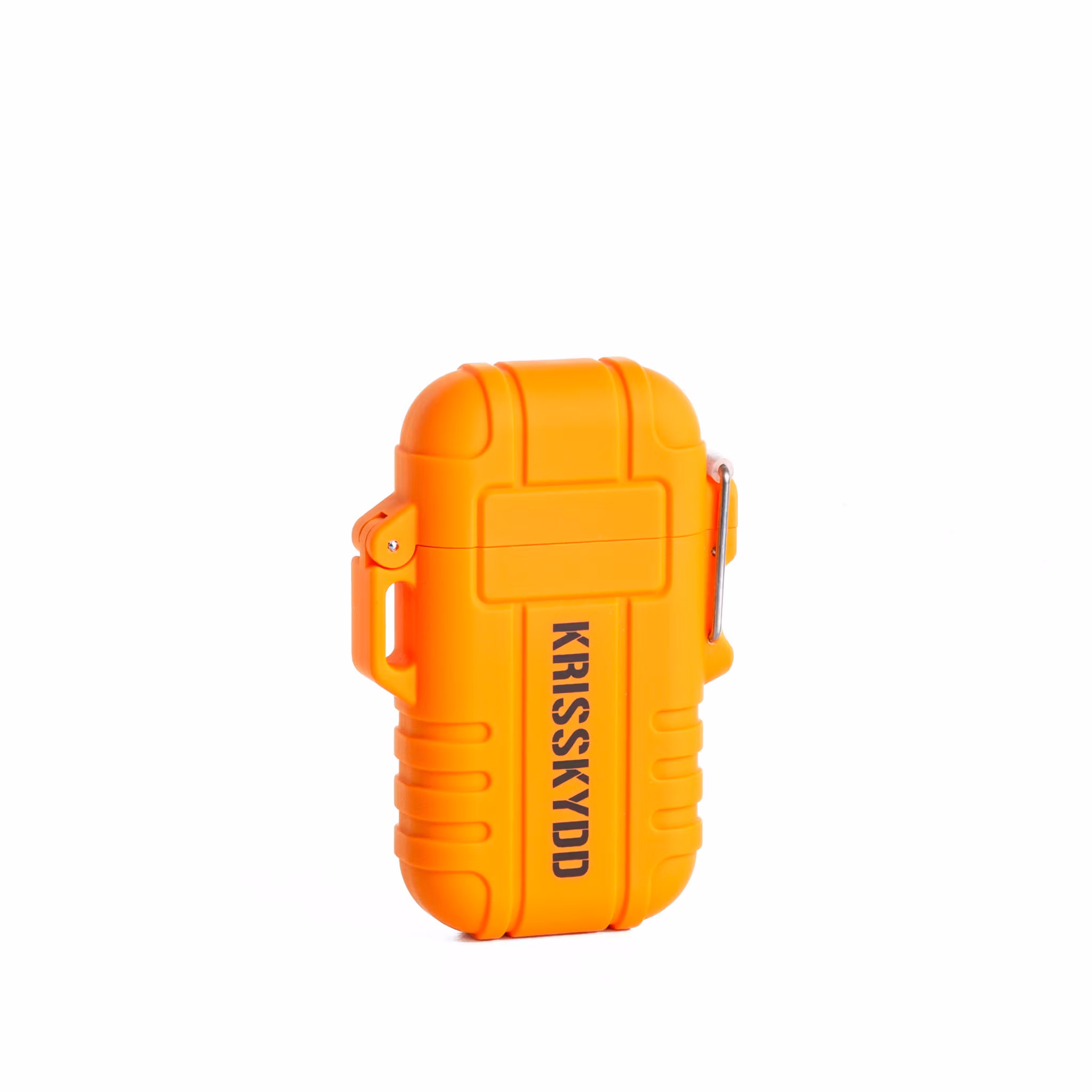 Orange tändare som tänder med en extremt varm elektrisk ljusbåge istället för eld. Det inbyggda batteri laddas med USB och tändaren tar alltså aldrig slut.